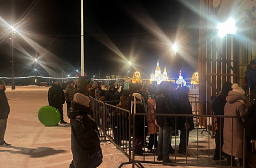 Благовещенцы выстроились в очередь к тюбинговой горке