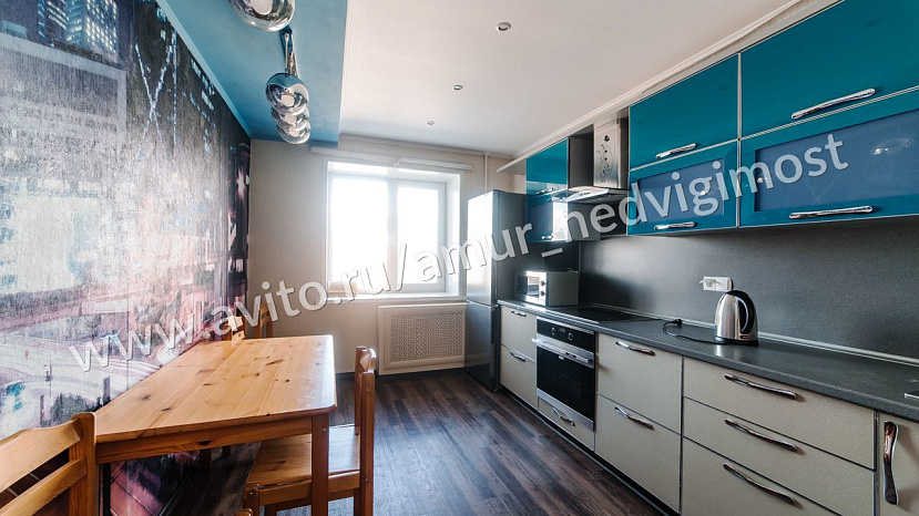 Продаётся 2-х комнатная по факту 3-х комнатная квартира на четвертом этаже пятиэтажного жилого дома в спокойном районе г. Благовещенска. Дом кирпичный, 2001 год постройки. Общая площадь - 81,8 м2. В квартире выполнен очень качественный ремонт по дизайн проекту. Напольное покрытие плитка ПВХ, потолки комбинированные гипсокартоном и натяжные. Предусмотрено зонирование зала. Квартира очень светлая на две стороны: север-юг, что делает её очень вентилируемой и проветриваемой. Просторная кухня. Санузел раздельный, в кафеле. В стоимость 9700 т.р. также входит стоимость гаража, который остается бонусом. Объект продается абсолютно со всей мебелью, дорогостоящей техникой. Застекленный балкон выходит на южную сторону с видом на детскую площадку внутри двора. Дом находится в непосредственной отдаленности от дороги, что исключает загазованности и пыли от дороги. Район престижный с развитой социальной инфраструктурой: детская поликлиника, роддом, больница1, спортивный клуб Колизей, лицей 6, супермаркеты, магазины, автобусные остановки в любой конец города. Документы готовы к продаже, обременений нет, вся сумма в договоре. Поможем с оформлением ипотеки по сниженным процентным ставкам!!!