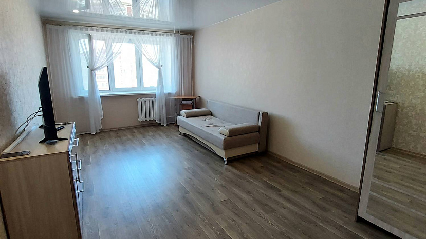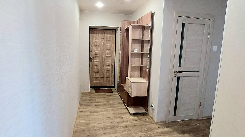 Экономремонт: выровнены стены, полы; натяжные потолки; качественные межкомнатные и входная двери; обои в светлых тонах; санузел в кафеле.