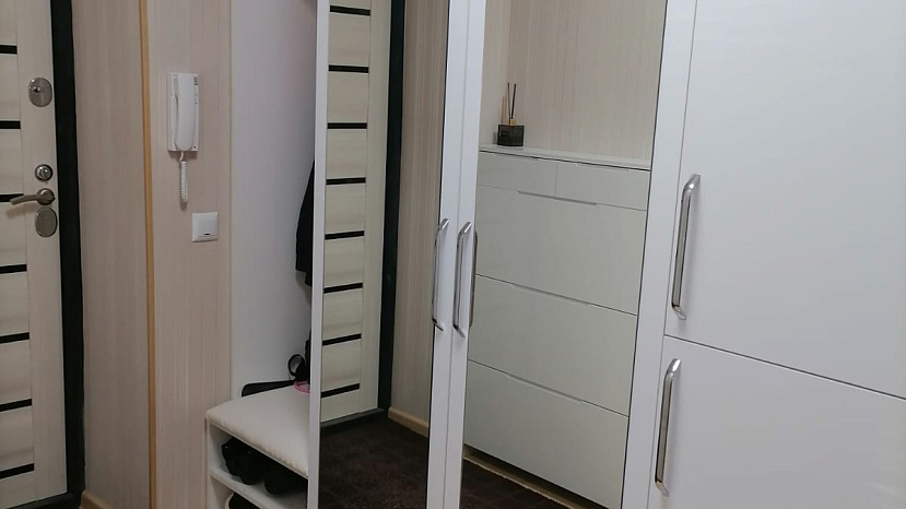 В квартире выполнен качественный ремонт, на стенах обои, напольное покрытие линолеум, кафель в ванной комнате.