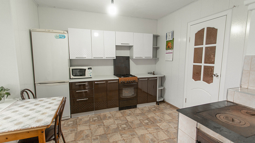 В квартире (66.6 кв.м.) выполнен ремонт, твердотопливная система отопления, септик на 3 куба.