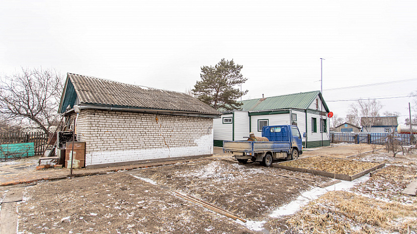 На территории в 13 соток расположен жилой дом, гараж (3.5х7), сарай (2.5х3.3), летняя кухня.