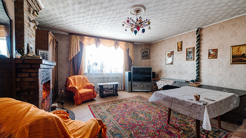 Любимым местом для всей семьи несомненно станет большая гостинная с настоящим камином.