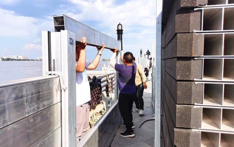 Неправильно сделали! Надо мешки с песком! Ну че не видят что ли, как нормальная соседняя страна укрепляет... Нет же, алюминий придумали, то же мне, решили выпендриться.