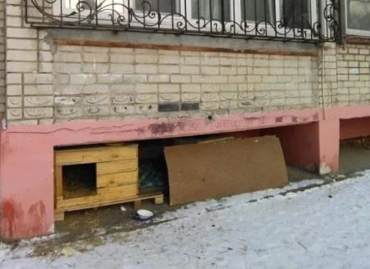 Возле благовещенской пятиэтажки поставили конуру для собак, которые бросаются на детей