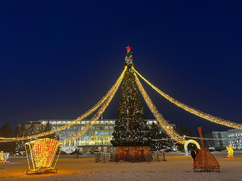 На площади им. Ленина в Благовещенске монтируют зимний городок