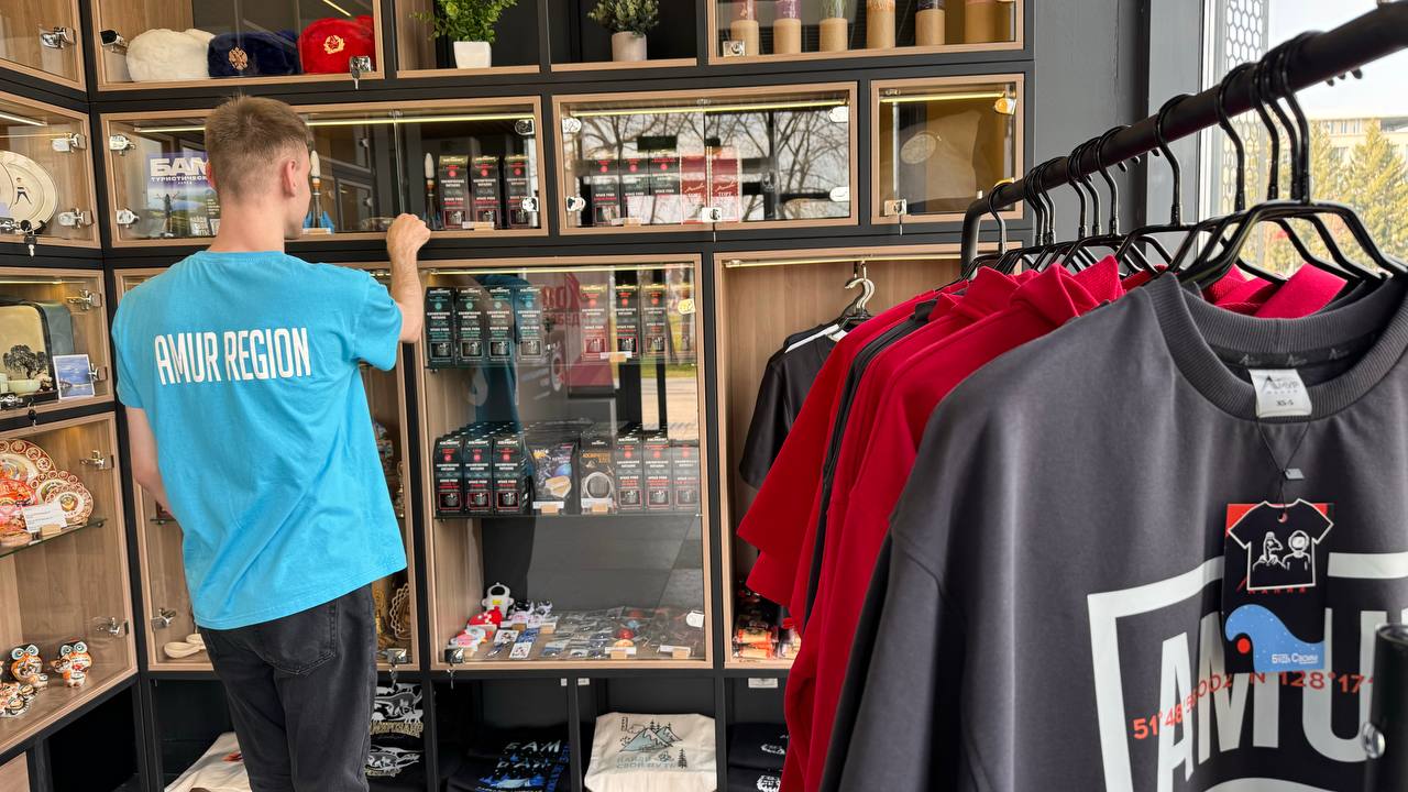 В павильоне, который расположен ближе к гостинице «Юбилейная», можно попробовать кофе, чай, коктейли с амурскими дикоросами. В обоих павильонах продают сувениры на тему российско-китайских отношений, космоса, динозавров и др.