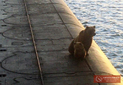 На Камчатке застрелили медведицу и медвежонка, залезших на подводную лодку