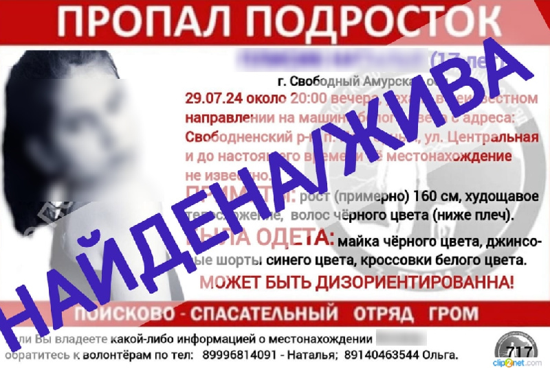 В Свободненском районе найдена живой пропавшая 17-летняя девушка